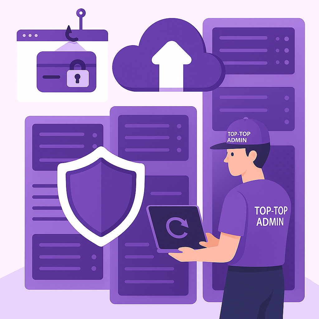 «После ухода нашего администратора мы были в шоке: никто не знал, что у нас и как работает. “Топ-Топ Админ” быстро разобрались, всё описали и навели порядок. Теперь мы уверены, что работа не зависит от одного человека, а данные надёжно защищены.»