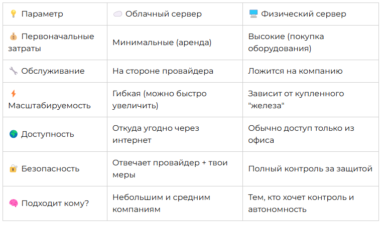 Облако — это удобно, быстро, без вложений в “железо”. Ты просто платишь за пользование, как за Netflix или аренду квартиры.